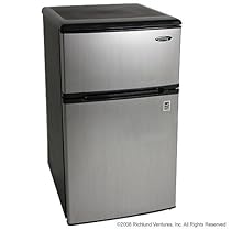 Customer reviews Danby DCR326BSL 3.1-Cu.Ft. Dual Door Compact Fridge with Freezer, Black/Stainless. It has a reversible door hinge, an integrated handle and a smooth back design for a flush fit against