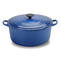 Le Creuset L2501-3430 Review: Le Creuset Enameled Cast-Iron 13-1/4-Quart Round French Oven, Cobalt. Can you love a pot?...I think I do. I know its love because even though I love it, it does annoy me, why, Well cause its heavy?...and even with our huge farmer sink it seems too big and heavy to clean sometimes. But I still love it. Thankfully it cleans fairly easily. Lamb, perfect. Roast, perfect. Duck, perfect. Meatballs, chili, soups, the list is endless. Very easy to cook without burning, holds heat so well. We can turn of the oven and 2 hours later the food is still warm. ... Read more »